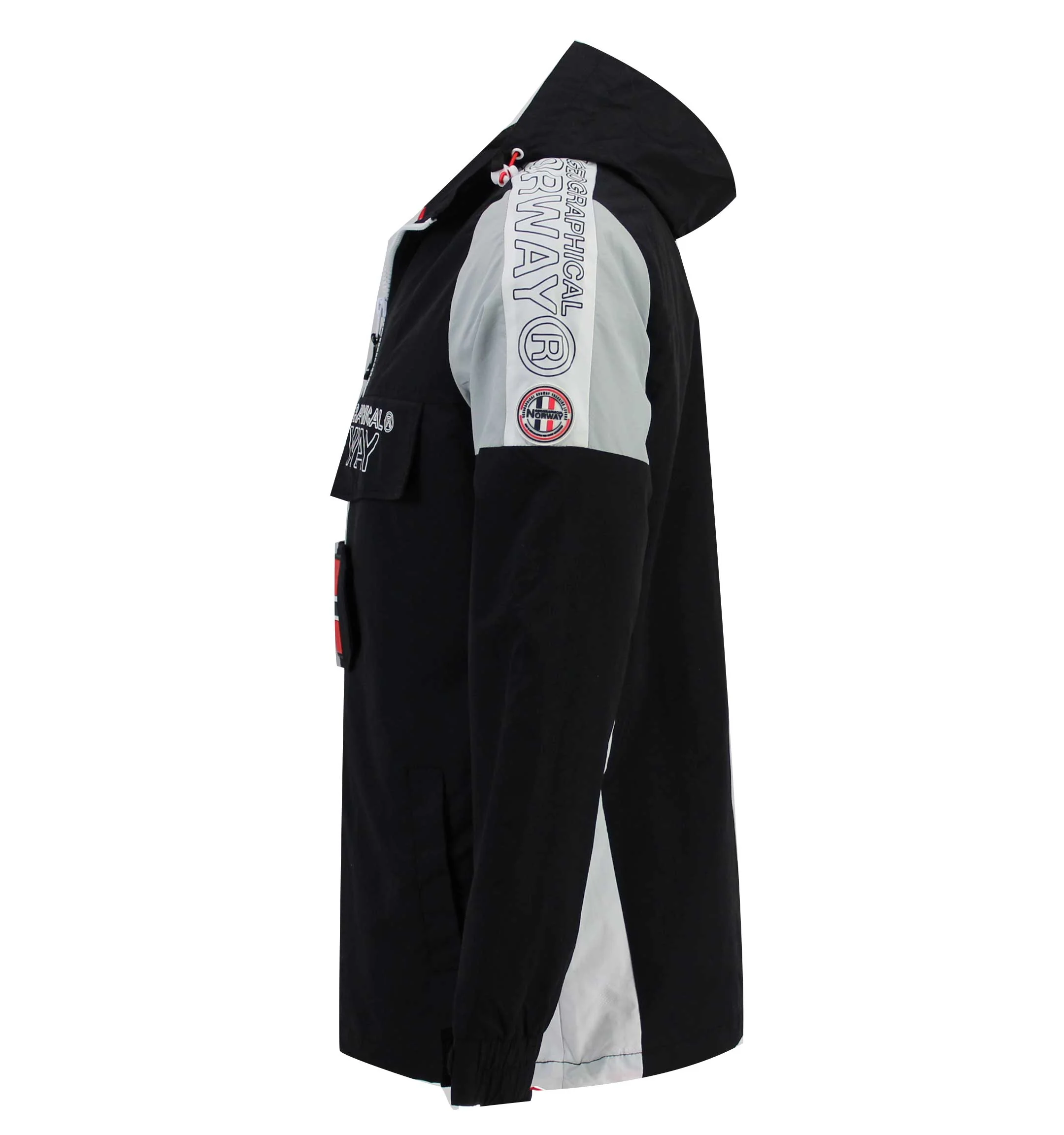 Chaqueta de niño GEOGRAPHICAL NORWAY de color negro de apertura de central en cremallera. Este modelo, que es impermeable y cortavientos, dispone de una capucha fija y puños ajustables, para lograr la máxima sujeción. Es un modelo perfecto para el verano.