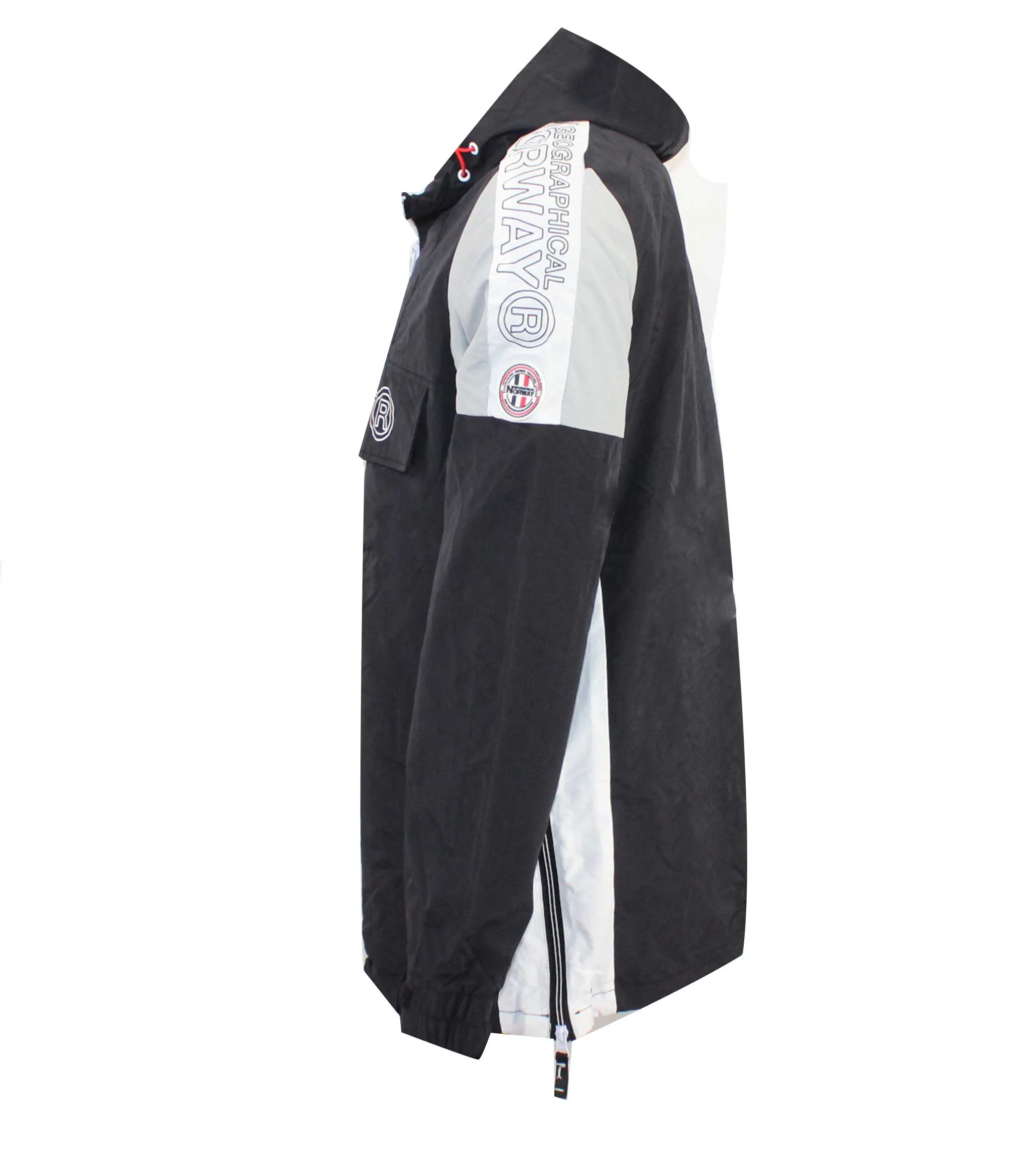 Chaqueta de niño GEOGRAPHICAL NORWAY de color negro de apertura en media cremallera. Este modelo, que es impermeable y cortavientos, dispone de una capucha fija y puños ajustables, para lograr la máxima sujeción. Es un modelo perfecto para el verano.
